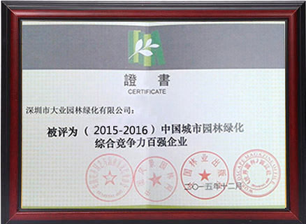 中國(guó)城市園林綠化綜合競(jìng)爭(zhēng)力百?gòu)?qiáng)企業(yè)