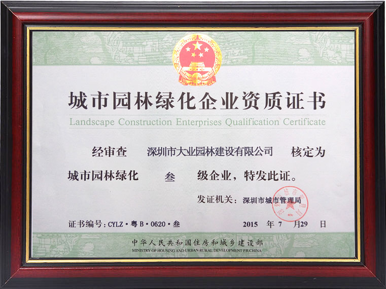 深圳市大業(yè)園林建設有限公司是一家集園林景觀設計、施工、養(yǎng)護、綠化苗木生產與經營為一體的綜合性園林綠化企業(yè)。企業(yè)注冊資金1080萬元。 公司具有健全的企業(yè)管理制度,尊重科學,重視人才,擁有一支技術精湛的專業(yè)設計、施工隊伍?,F(xiàn)有各類職稱技術人員、綠化工、花卉工等共計100余人。擁有灑水車、工具車、高空修剪車、裝載機等技術設備十多臺。 公司成立至今,承建完成的公園、市政、住宅、企事業(yè)單位等綠化綜合性工程和土方工程300多項,工程總量超過800萬平方米。代表性工程如:東莞中信園綠化景觀工程,南通道k2-k8標段道路綠化工程,創(chuàng)富時代俊景園景觀設計工程,深圳市坪地國際低碳城客家圍屋綠化工程等市重點工程;坂田街道辦等區(qū)綠化改造工程;中國資本學院等園林景觀設計和綠化養(yǎng)護管理工程。曦城別墅景觀設計,惠州香樟美墅庭院景觀設計等。其中龍崗公園大地園林景觀綠化工程(三期 項目獲中國風景園林學會的金獎,寶安區(qū)松崗東方片區(qū)舊改造景觀綠化工程;項目和布吉龍園意境園林工程;項目分別獲廣東省和深圳市的優(yōu)良樣板工程。 公司擁有四個苗木基地,其中廣東揭陽占地200多畝,惠州基地占80多畝、廣州、深圳基地各占25-30,總共占地300多畝,苗木儲備資源豐富,品種齊全,規(guī)格全面,為我司在一系列大型重點綠地的建設中及時、優(yōu)質地提供了大量的苗木品種。 |
